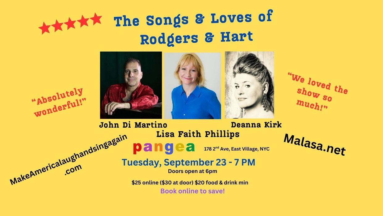 Join us for our new The Songs and Loves of Rodgers & Hart as we explore their remarkable careers and colorful love lives against the backdrop of their great love songs in this “wildly entertaining” show by Lisa Faith Phillips, Deanna Kirk and John Di Martino on piano.